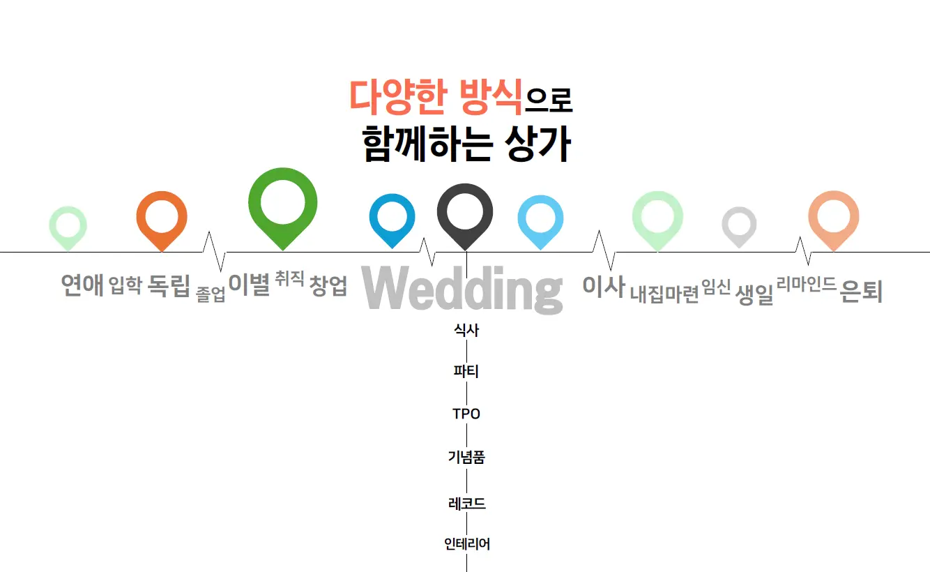 웨딩거리는 과거 다양한 산업이 공존했으나 웨딩산업으로 특성화된 후 한동안 전성기를 구가하다가 급격히 쇠퇴해 공실이 많은 상황이다. 하지만 오랜 전통의 노포들이 몇몇이 남아 있고, 평화와평화, 금성당, 가노, 노매딕 브루어링 같은 창의적 소상공인들이 새롭게 생겨나고 있는 전환기의 공간이기도 하다. 쇠퇴하고 있지만, 지속가능성을 만들기 위해서는 전환기를 어떻게 보내느냐가 매우 중요한 골든타임인 것이다.