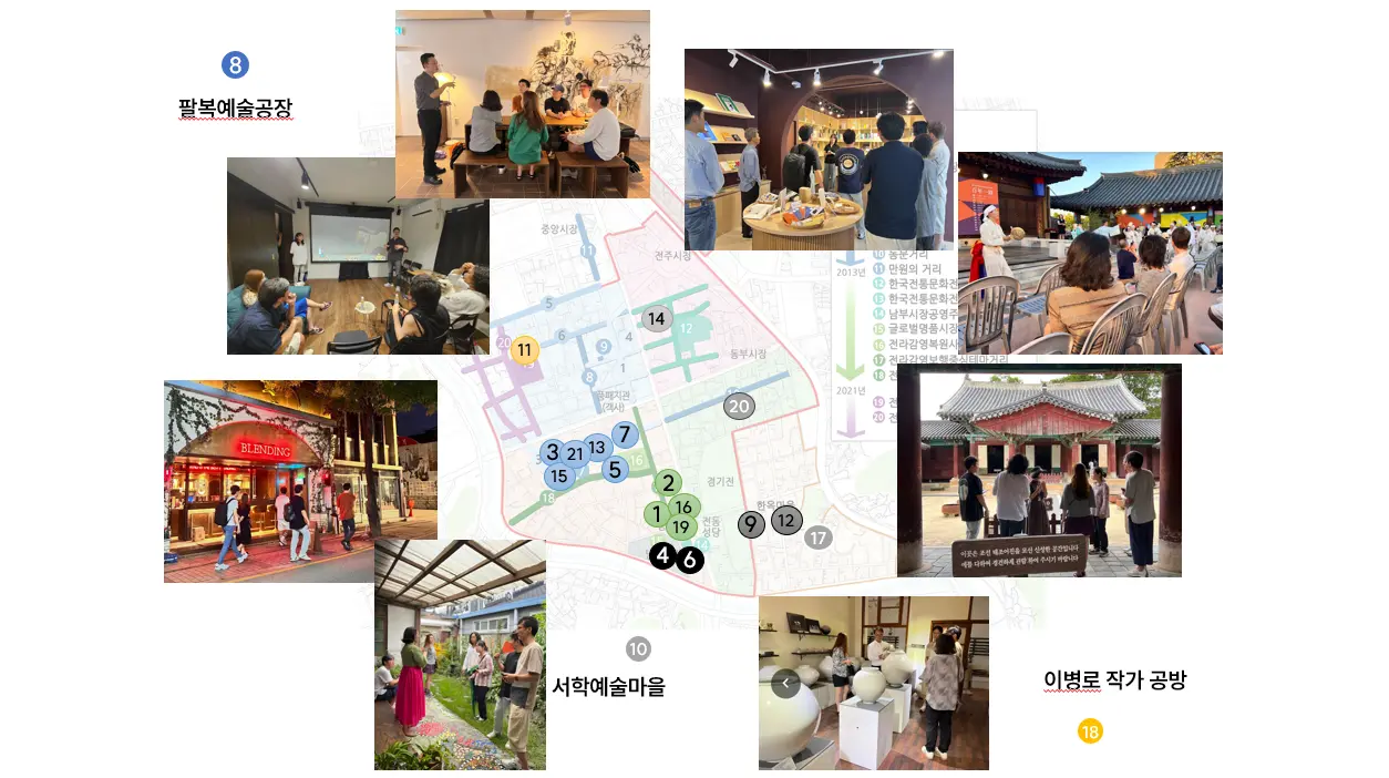 - 9박 10일 전주 원도심 체류 프로그램: 기존 당일치기 여행을 넘어서 전주 원도심의 관계인구가 되어가고 지역 창조성의 일원이 되어가는 체험